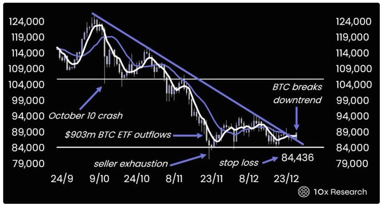 Xét về mặt biểu đồ, Bitcoin gần đây đã vượt lên trên đường xu hướng giảm, báo hiệu khả năng xu hướng đã cạn kiệt. Mức hỗ trợ quan trọng gần vùng 85.000 đô la vẫn giữ vững, củng cố niềm tin của người mua. Chừng nào Bitcoin còn duy trì trên vùng này, thị trường sẽ tránh được những khoản lỗ sâu hơn.