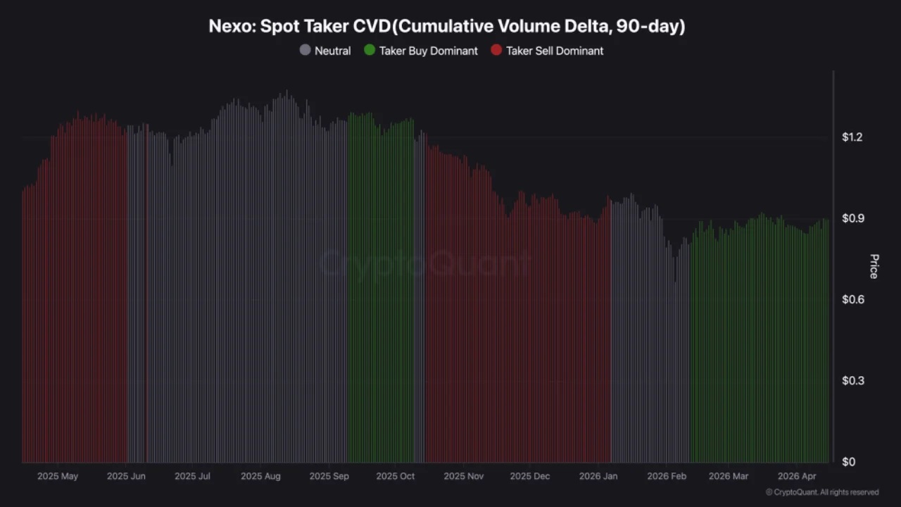 CryptoQuant nhấn mạnh rằng sự gia tăng taker buy trên Nexo thường xuất hiện trước các đợt tăng giá mạnh. Đáng chú ý, dòng tiền này không chỉ đến từ retail mà còn từ cá voi và tổ chức, cho thấy “smart money” đang quay lại.