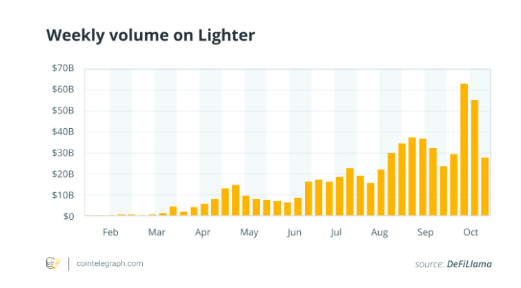 Tuy nhiên, lợi thế của Hyperliquid đang bị thu hẹp khi Aster (trên BNB Chain, liên quan CZ) và Lighter (trên Ethereum) nổi lên với khối lượng giao dịch hàng chục tỷ USD mỗi ngày, biến thị trường DEX trở thành cuộc đua ba bên gay gắt.