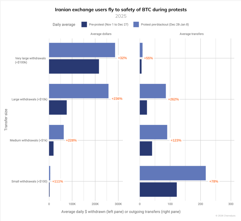 “Điều đáng nói nhất là sự gia tăng rút tiền từ các sàn Iran sang các ví Bitcoin cá nhân không định danh. Điều này cho thấy người Iran đang nắm giữ Bitcoin với tốc độ cao hơn đáng kể trong thời gian biểu tình so với trước đó.”