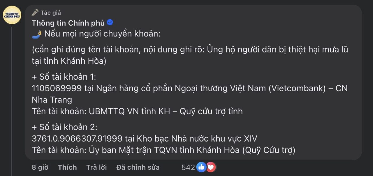 Mọi khoản quyên góp ủng hộ người dân miền Trung, xin chuyển về UBMTTQ Việt Nam: