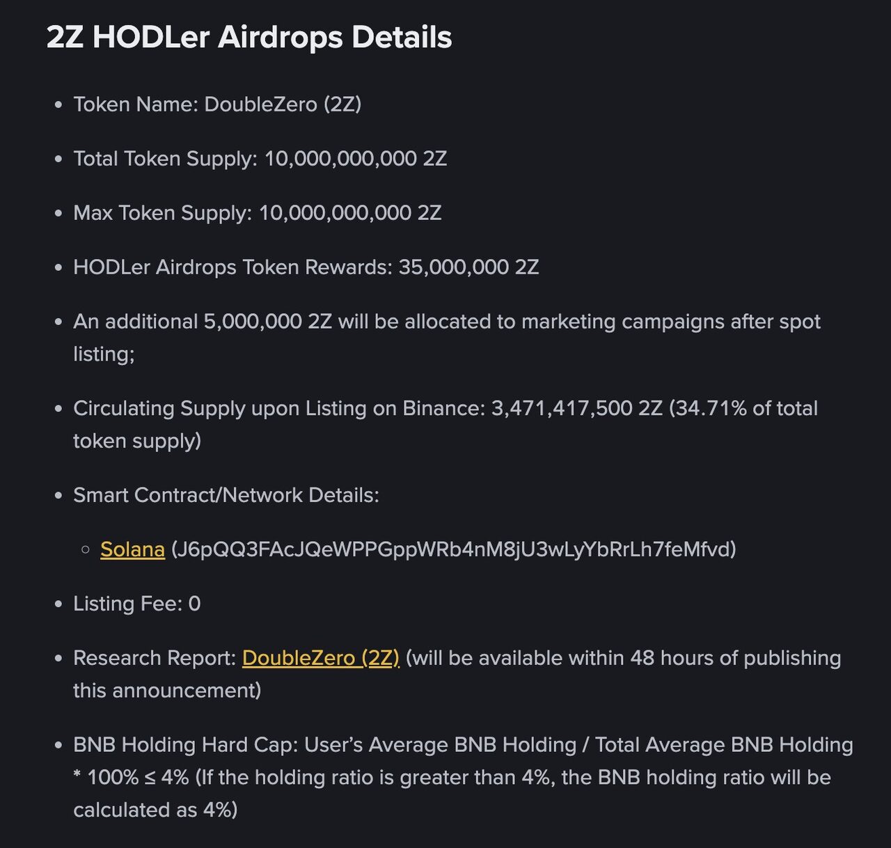 2Z sẽ được Binance niêm yết dưới dạng “seed tag”. Dạng này để phân loại các dự án tiền điện tử thường đang trong giai đoạn phát triển ban đầu và có thể chưa có sản phẩm hoạt động, ngoài ra tiền điện tử niêm yết dạng này cũng có rủi ro cao.