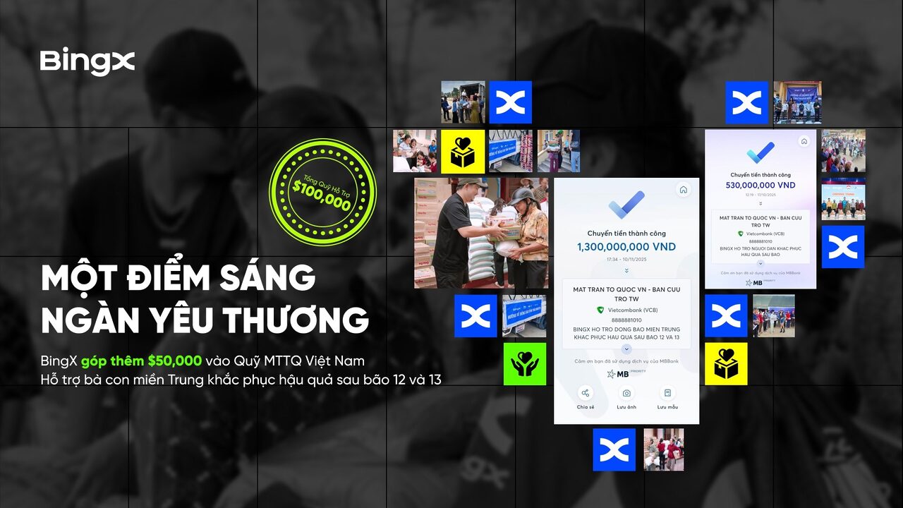 Với lần đóng góp mới trị giá 50,000 USD, tổng quỹ cứu trợ bão lũ mà BingX đã quyên góp cho Việt Nam đã đạt 2,6 tỷ đồng (100,000 USD), hướng đến hỗ trợ người dân miền Trung khắc phục hậu quả nghiêm trọng sau bão số 13.