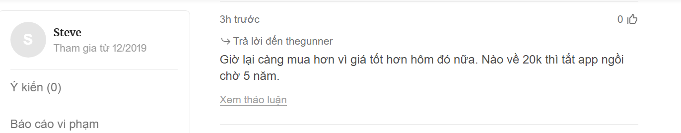 Trong khi đó, độc giả Steve cho rằng: “Bây giờ giá giảm lại càng mua để trung bình giá, vì giá hiện tại tốt hơn mốc 90.000 USD. Chừng nào Bitcoin về 20.000 USD thì tắt app ngồi chờ 5 năm.”