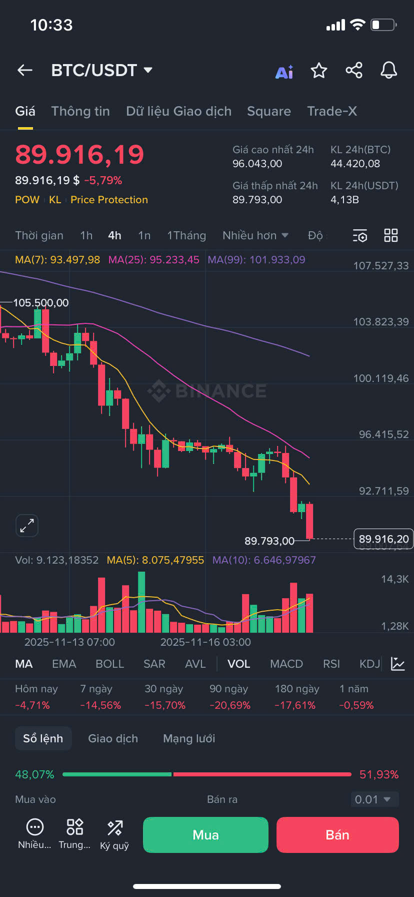 Giá Bitcoin mới đây đã có mức giảm xuống 89.793 USD – mức thấp nhất kể từ tháng 2 – diễn ra chỉ sáu tuần sau khi giá đạt mức kỷ lục 126.250 USD, việc Bitcoin thủng mốc 90.000 USD đánh dấu một sự điều chỉnh lớn.