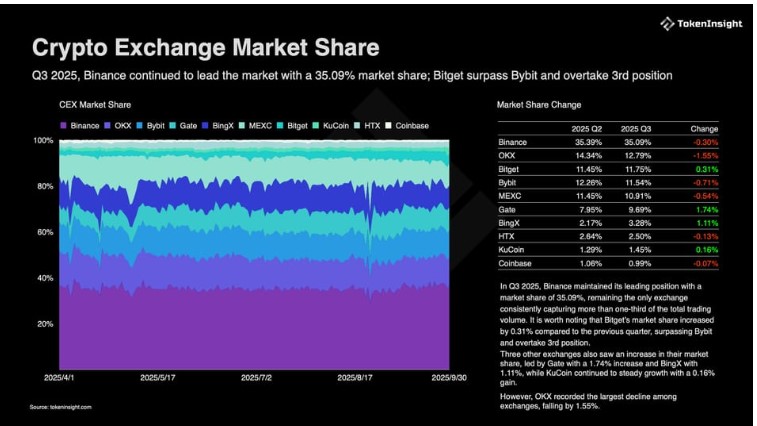 Giữa bức tranh tăng trưởng đó, Bitget nổi bật với bước tiến ấn tượng, vượt Bybit để vươn lên vị trí thứ ba toàn cầu về thị phần giao dịch.