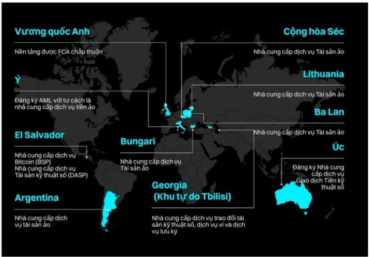 Trong năm 2025, sàn đã đạt giấy phép hoạt động tại Ý, Ba Lan, Litva, Cộng hòa Séc, Bulgaria, Argentina, El Salvador, và mới nhất là giấy phép tài sản số tại Georgia, cho phép hoạt động hợp pháp trong Khu tự do Tbilisi (TFZ).