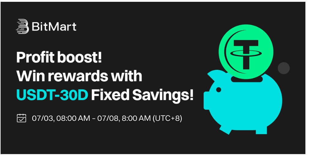 Người dùng BitMart đăng ký sản phẩm Tiết kiệm cố định USDT-30 ngày có thể được hưởng lãi suất phần trăm hàng năm (APY) là 6%, trong khi người dùng VIP có thể được hưởng APY là 6.5%. Chương trình khuyến mãi USDT giới hạn lần đầu tiên này mang đến một trong những APY cao nhất trong ngành. Chương trình khuyến mãi diễn ra từ 07:00, ngày 03/07/2024 đến 07:00, ngày 08/07/2024 (giờ VN).
