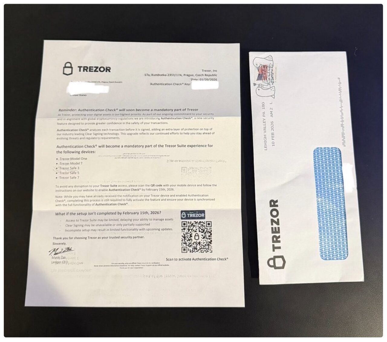 Trong một trường hợp, một bức thư đã được ký giả mạo bằng tên của Giám đốc điều hành của Trezor, gây thêm nhầm lẫn cho người nhận.