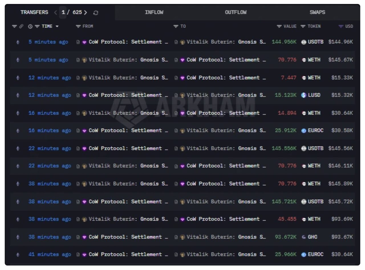Trong tháng vừa qua, nhà phát triển đã thanh lý khoảng 11.000-17.000 ETH (tương đương 23 triệu đến 43 triệu đô la), chỉ còn lại khoảng 224.000 ETH. Dữ liệu trên chuỗi cho thấy anh ta định kỳ thực hiện việc này theo từng đợt nhỏ để ngăn chặn những tác động tiêu cực mạnh mẽ đến giá ETH.