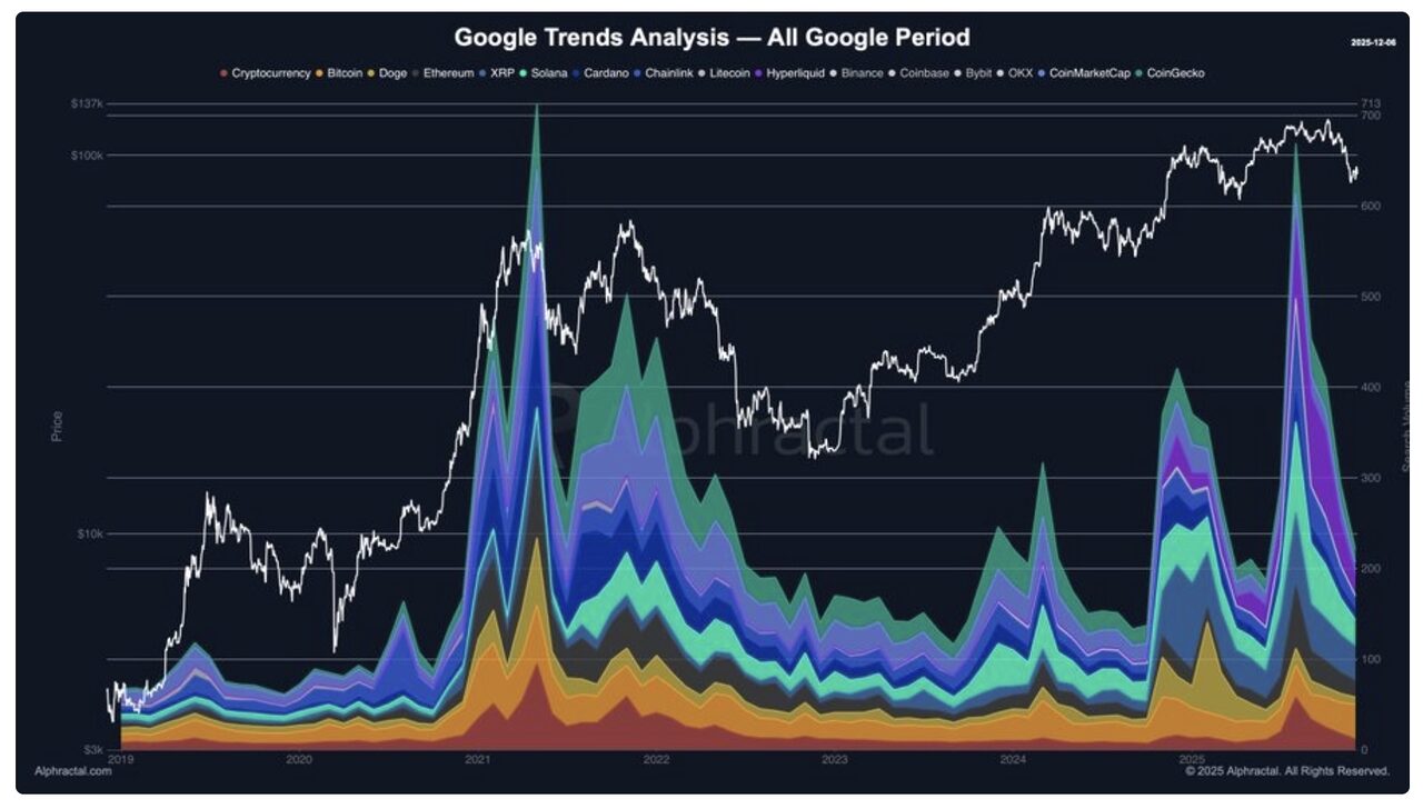 📉 Google Trends shows retail interest crushed vs previous cycle tops — crowd attention is gone. Historically, this is where early capital positions while sentiment is numb, not euphoric. pic.twitter.com/DpjcNVoFQ3