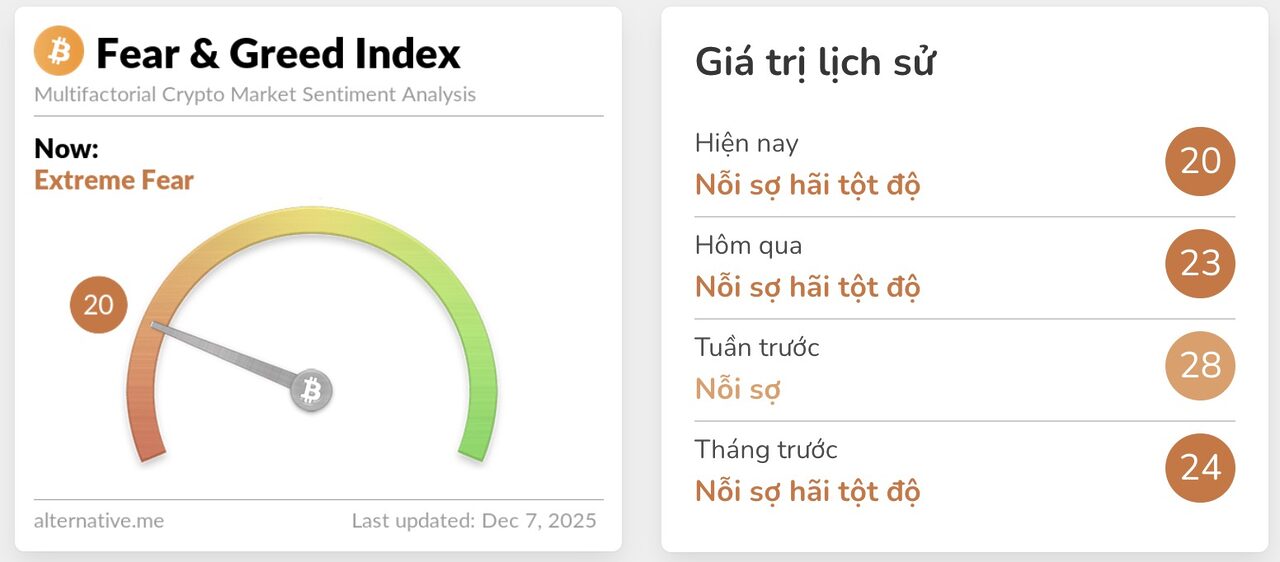 Chỉ số thị trường tiền điện tử chạm mức sợ hãi tột độ