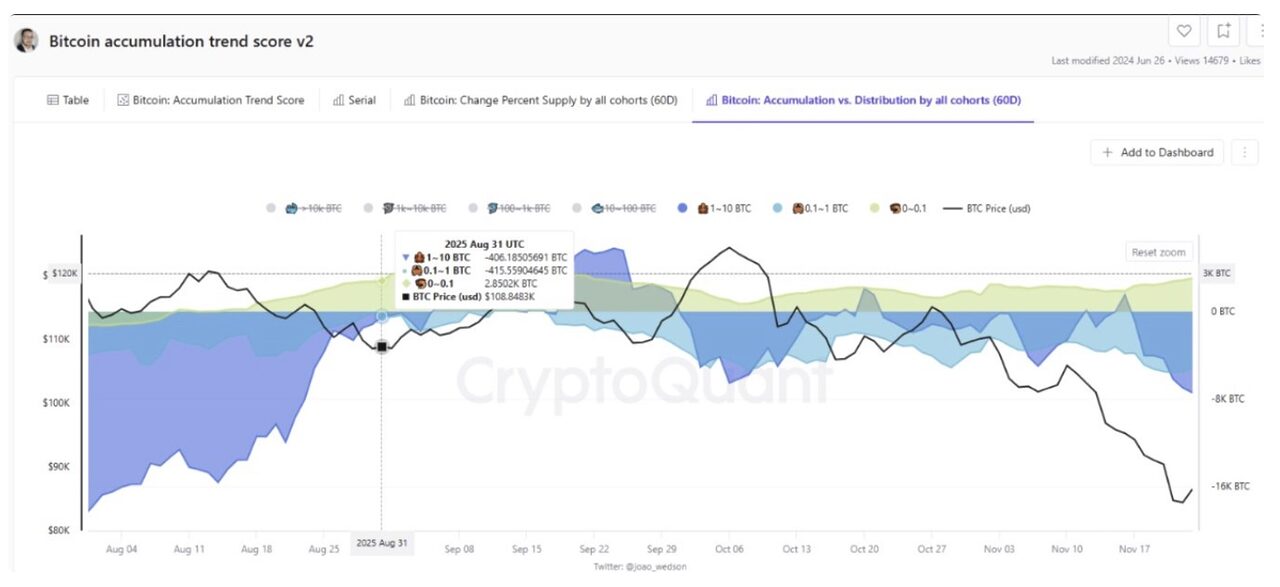 Do đó, khi cả cá voi và nhà đầu tư nhỏ lẻ đều chọn sự an toàn, chốt lời và giảm rủi ro sau đợt tăng giá vào tháng 10, Bitcoin không còn lực mua vững chắc nào nữa.