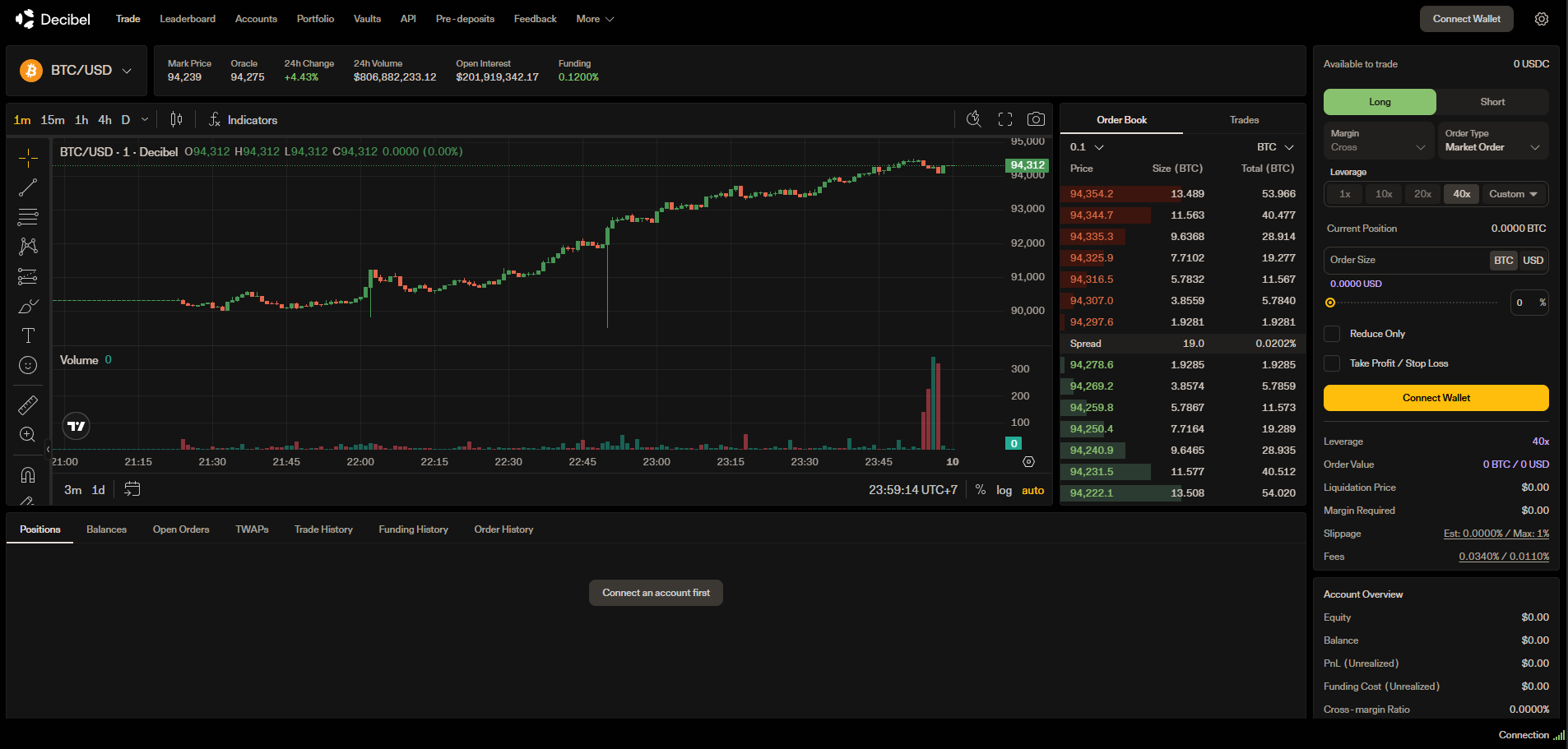 Decibel là giao thức giao dịch on-chain hợp nhất spot, perpetuals, margin và vault vào một nền tảng duy nhất (all-in-on), mang lại trải nghiệm tương đương CEX nhưng vẫn giữ tính minh bạch và quyền sở hữu tài sản của DeFi.