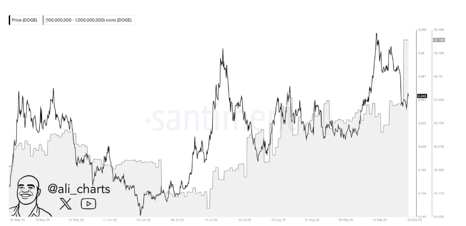 Dữ liệu on-chain cho thấy một “cá voi” Dogecoin đã rút một lượng lớn Dogecoin khỏi sàn giao dịch tiền điện tử Binance mặc dù giá memecoin đang giảm.