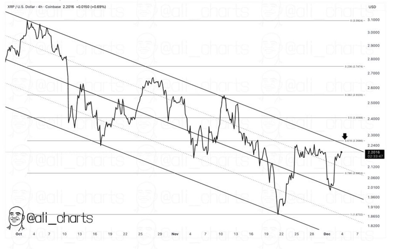 Theo nhà phân tích biểu đồ hàng đầu Ali Martinez, mức này là một rào cản lớn. Do thiết lập này, XRP hiện đang bị kẹt giữa ngưỡng hỗ trợ mạnh bên dưới và ngưỡng kháng cự mạnh bên trên.