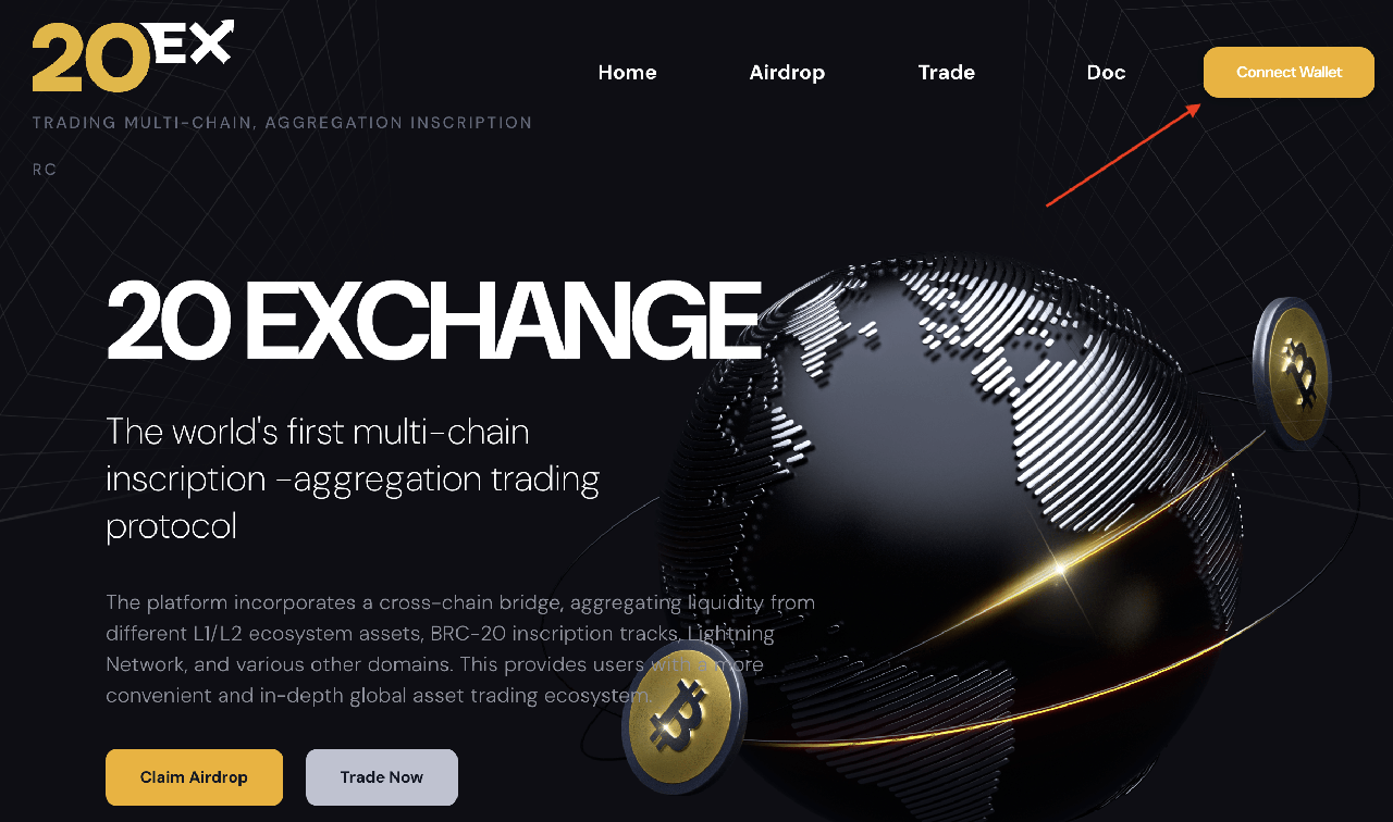 - Truy cập trang web của 20EX và nhấp vào trang airdrop: https://20ex.io.