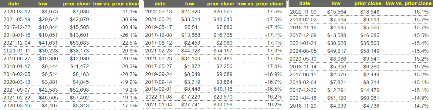 Trong năm nay, đã có ba lần Bitcoin giảm hơn 10% trong ngày, trong đó có mức giảm 15,4% hôm 5/8/2024. Hiện hợp đồng tương lai Bitcoin vẫn giao dịch thấp hơn khoảng 5% so với giá giao ngay, phản ánh tâm lý dè chừng của nhà đầu tư.