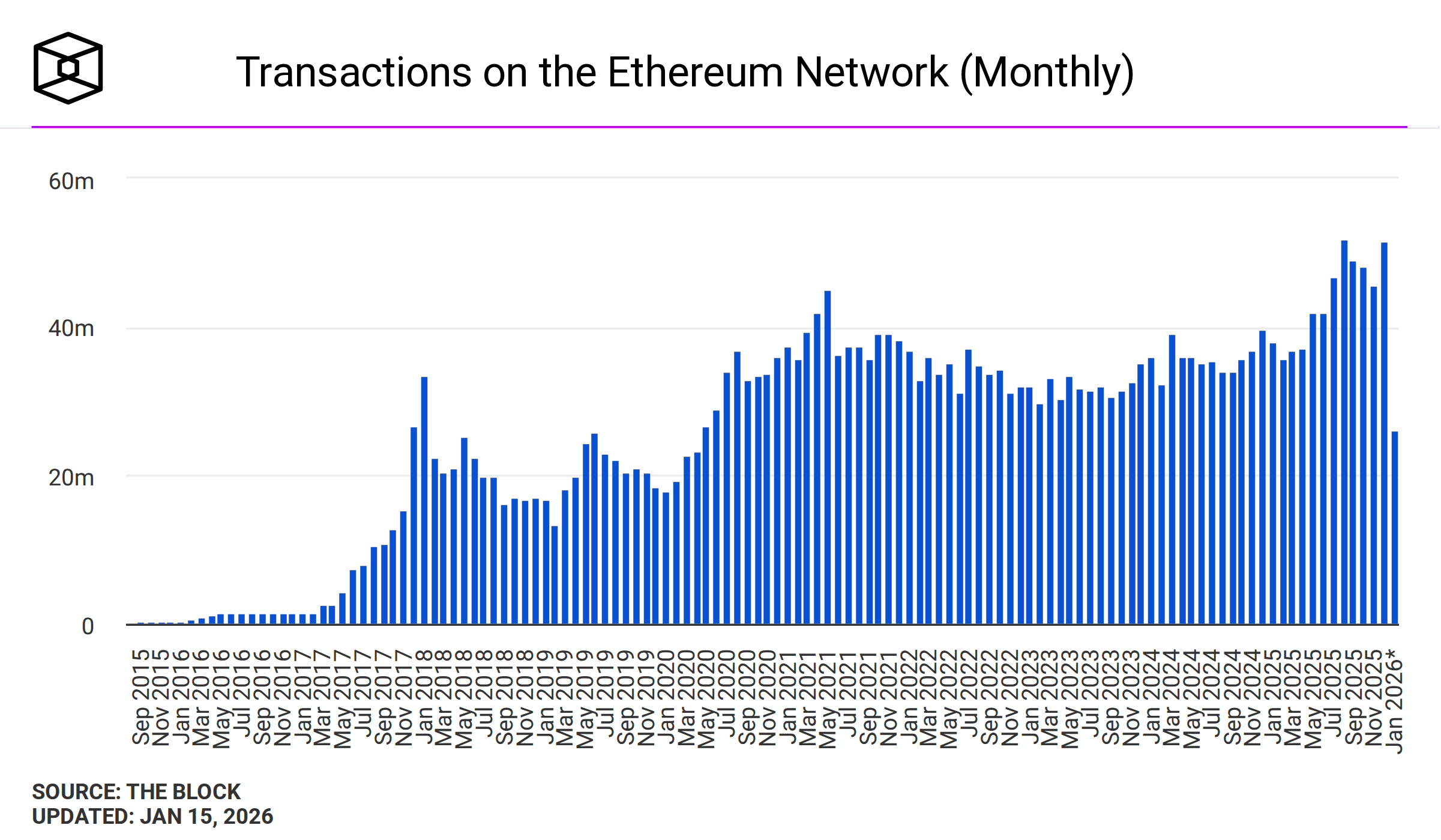 Theo Etherscan, ngày 14/01/2026, số giao dịch trên Ethereum mainnet đạt 2.595.176 giao dịch, mức cao nhất từ trước đến nay.