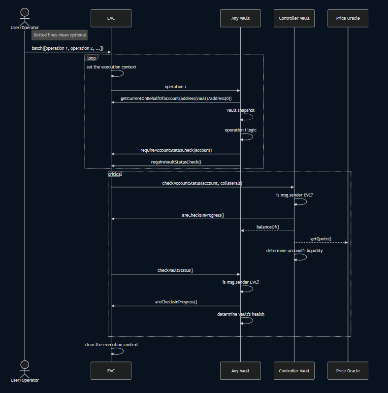 Ethereum Vault Connector (EVC): hợp đồng thông minh hỗ trợ các hành động như deposit, borrow, repay, swap… trong một giao dịch atomic.