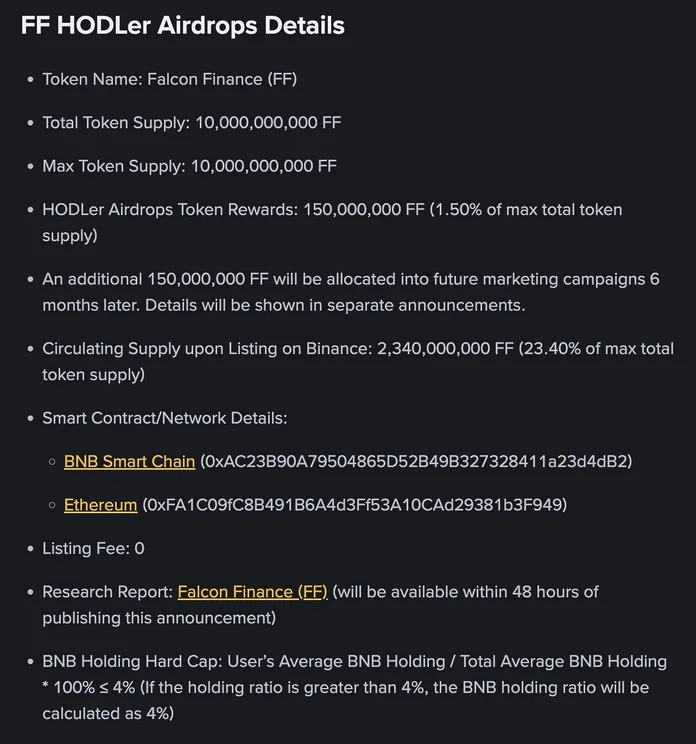 Falcon Finance (FF) – dự án thứ 46 lên Binance HODLer Airdrop