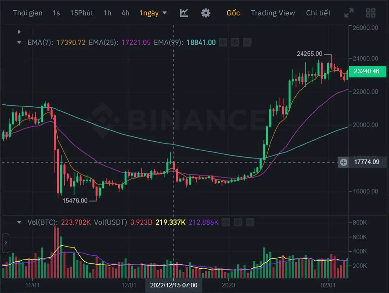 Trong lần này, giá Bitcoin đã có sự tăng trưởng lên gần 19000 USD trước khi giảm về gần 16000 USD và có sự phục hồi mạnh mẽ trong những tháng đầu năm 2023.