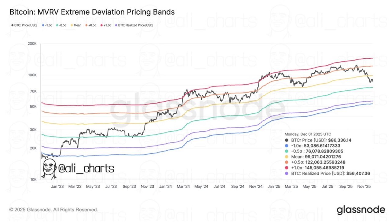 Nhà phân tích chuỗi Ali Martinez nêu bật hai ngưỡng kháng cự chính dựa trên dải giá của Glassnode. Theo ông, Bitcoin phải phá vỡ: