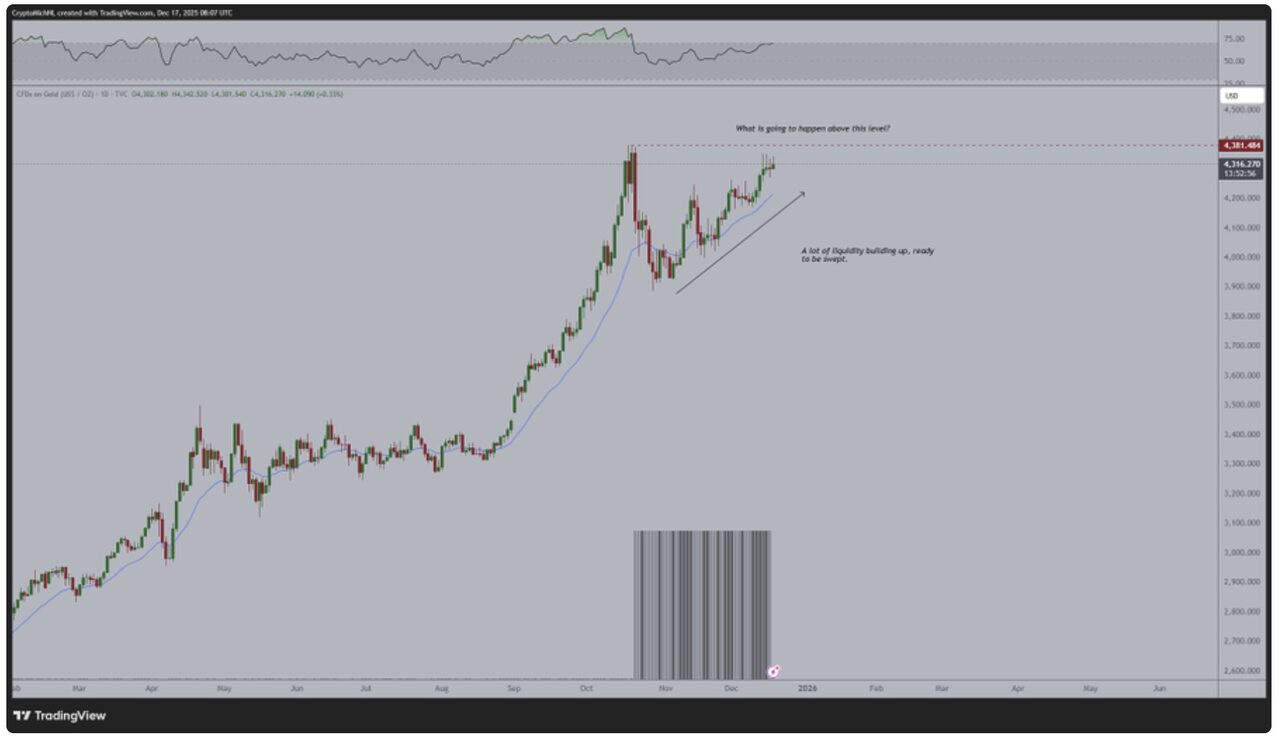Van de Poppe tin rằng tháng Giêng có thể đánh dấu đỉnh điểm vĩ mô của vàng, đặc biệt nếu điều kiện thanh khoản thắt chặt hoặc một sự kiện kinh tế lớn tác động đến thị trường.
