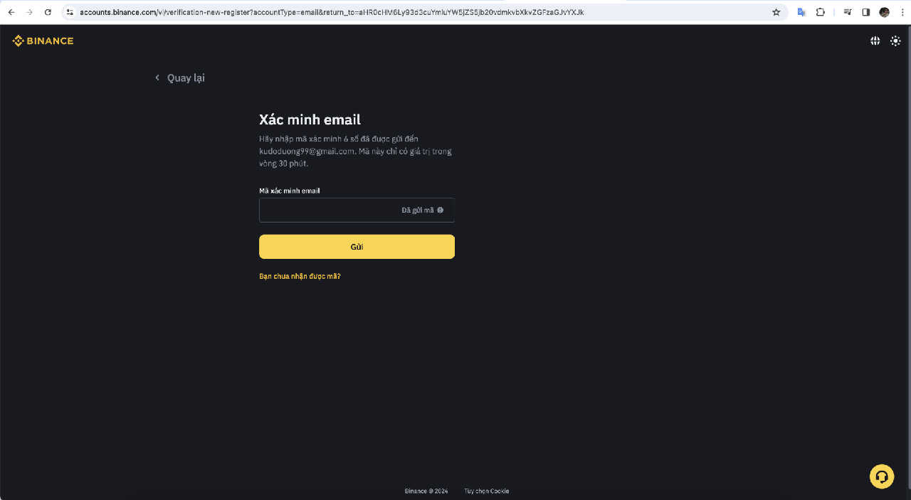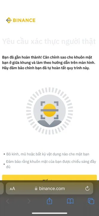 Để hoàn tất quá trình đăng ký, bạn sẽ cần phải hoàn tất quá trình xác minh. Binance yêu cầu người dùng phải trải qua xác minh KYC trước khi bạn muốn thực hiện các giao dịch.