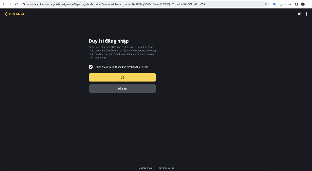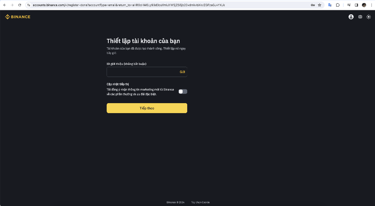 Các bước này được hướng đẫn trên trình duyệt desktop. Để đăng ký tài khoản binance trên điện thoại bạn cũng có thể thực hiện tương tự các bước qua trình duyệt của điện thoại nha.