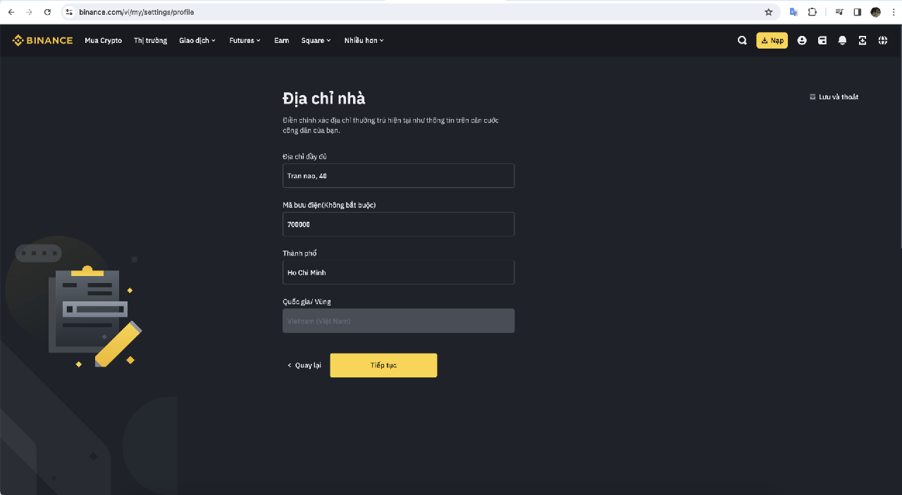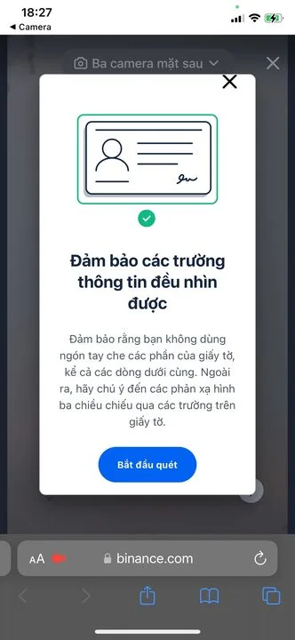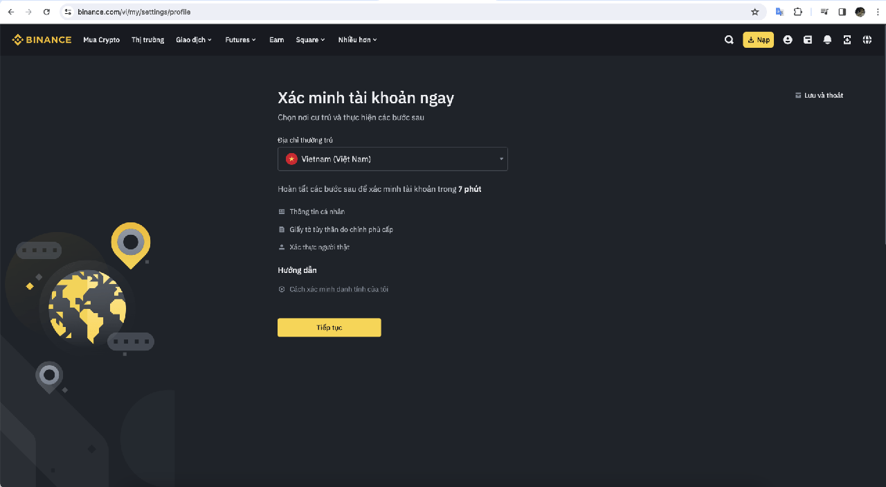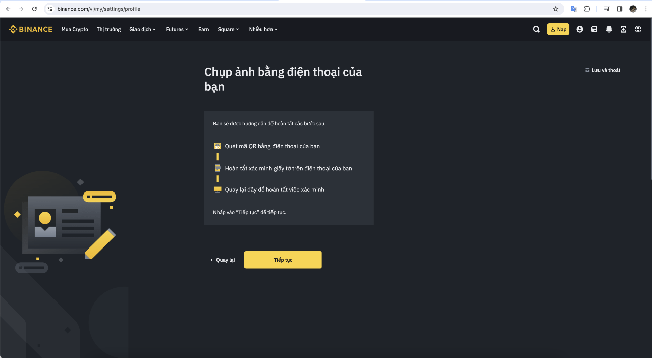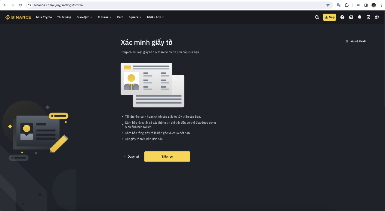 Tiếp tục quá trình xác minh giấy tờ tuỳ thân của mình