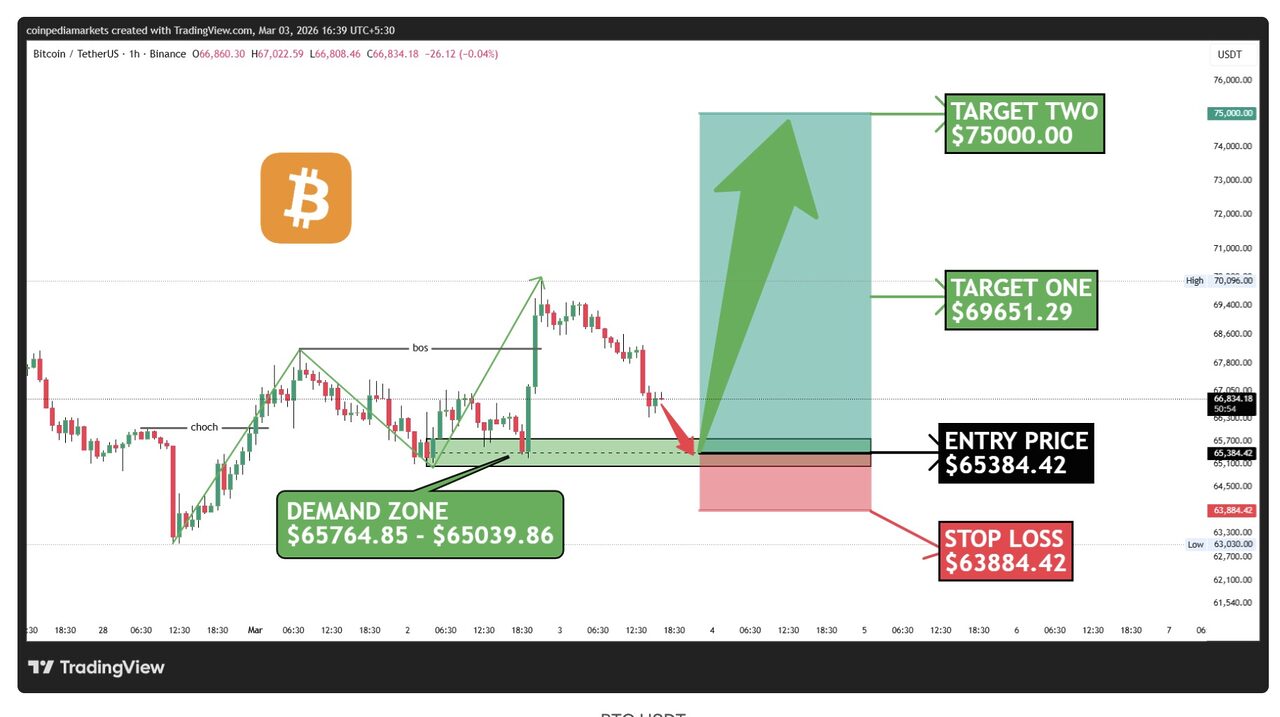 Giá hiện đang phản ứng từ vùng hỗ trợ này, điều này có thể kích hoạt một đợt tăng giá tiếp theo hướng tới $69.6K, tiếp theo là khả năng mở rộng lên tới $75K nếu người mua duy trì được quyền kiểm soát.