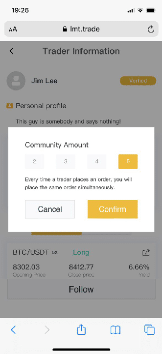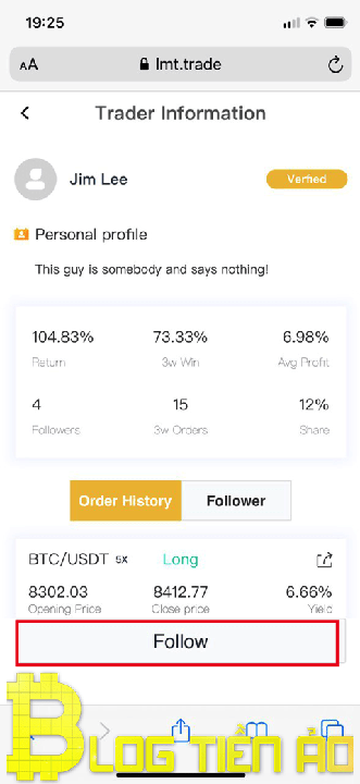 Sau khi chọn được trader bạn yêu thích, nhấn “Follow” để sao chép.
