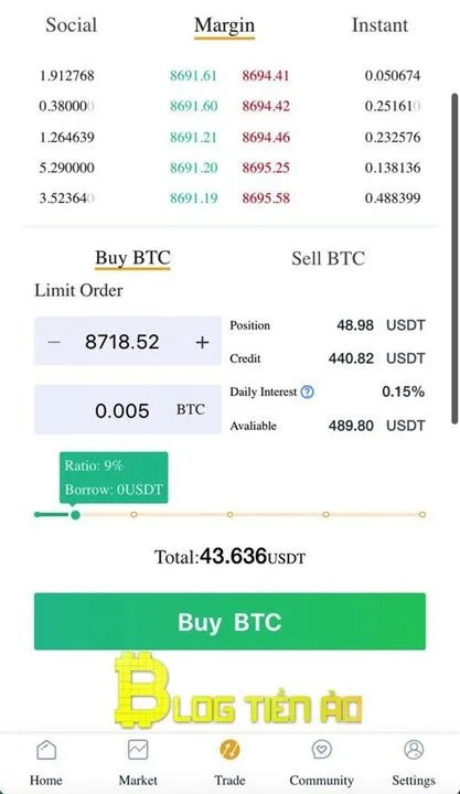Các bạn chỉ cần nhập số lượng vô, với mức phí 0.15% tương đương đòn bẩy x10. Cho nên các bạn tự tính toán con số của mình để vào nhé.