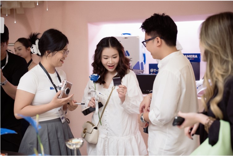 Không gian sự kiện được thiết kế mang đậm dấu ấn nghệ thuật. Backdrop phá cách với tông xanh đặc trưng của MEXC kết hợp cùng kẽm xoắn thủ công và hoa tươi, thay thế cho phông in truyền thống, tạo nên điểm nhấn hiện đại và tinh tế. Tại đây, khách mời được ghi lại khoảnh khắc bằng ảnh film lấy liền, lưu giữ từng nụ cười, ánh mắt và cảm xúc – như cách mỗi người chúng ta lưu giữ lại dấu ấn của chính mình trong dòng chảy cuộc sống.