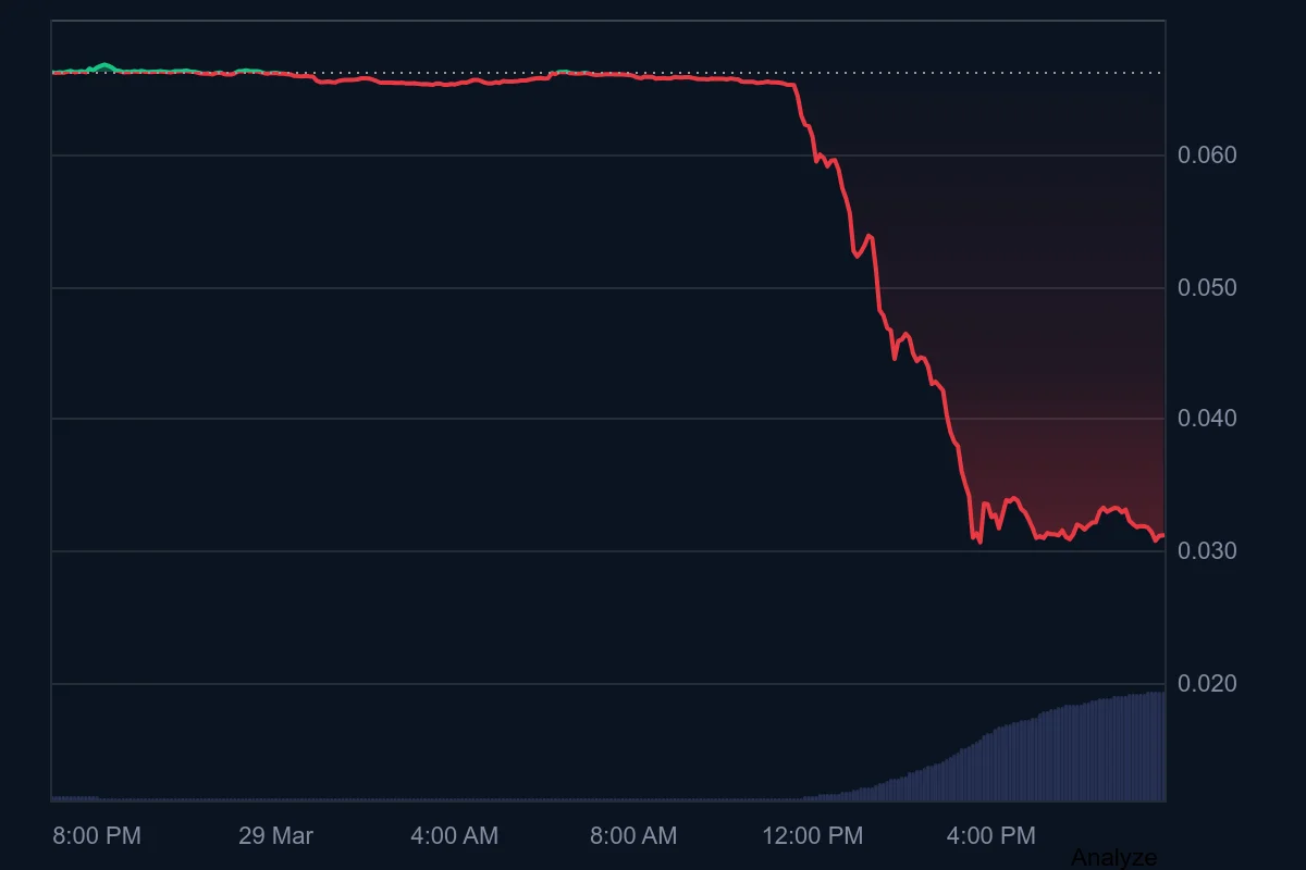 Core vừa gây sốc thị trường khi giảm hơn 53% giá trị, rơi xuống khoảng 0,031 USD chỉ trong vòng 24 giờ.