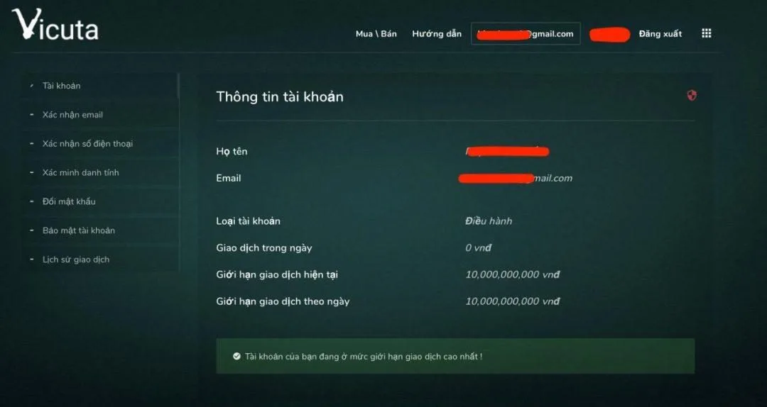 Lưu ý là bạn cũng không cần nhất thiết bảo mật tài khoản Vicuta vì đây chỉ là nơi mua bán, không lưu trữ coin trên sàn nên việc bị mất tài khoản thì bạn cũng yên tâm vì không ảnh hưởng tới tài sản của bạn nhé.