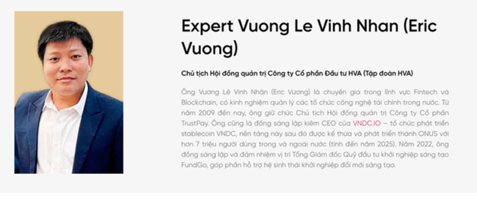 ONUS phát triển từ nền tảng VNDC, gắn với doanh nhân Vương Lê Vĩnh Nhân, người sáng lập và điều hành hệ sinh thái này.