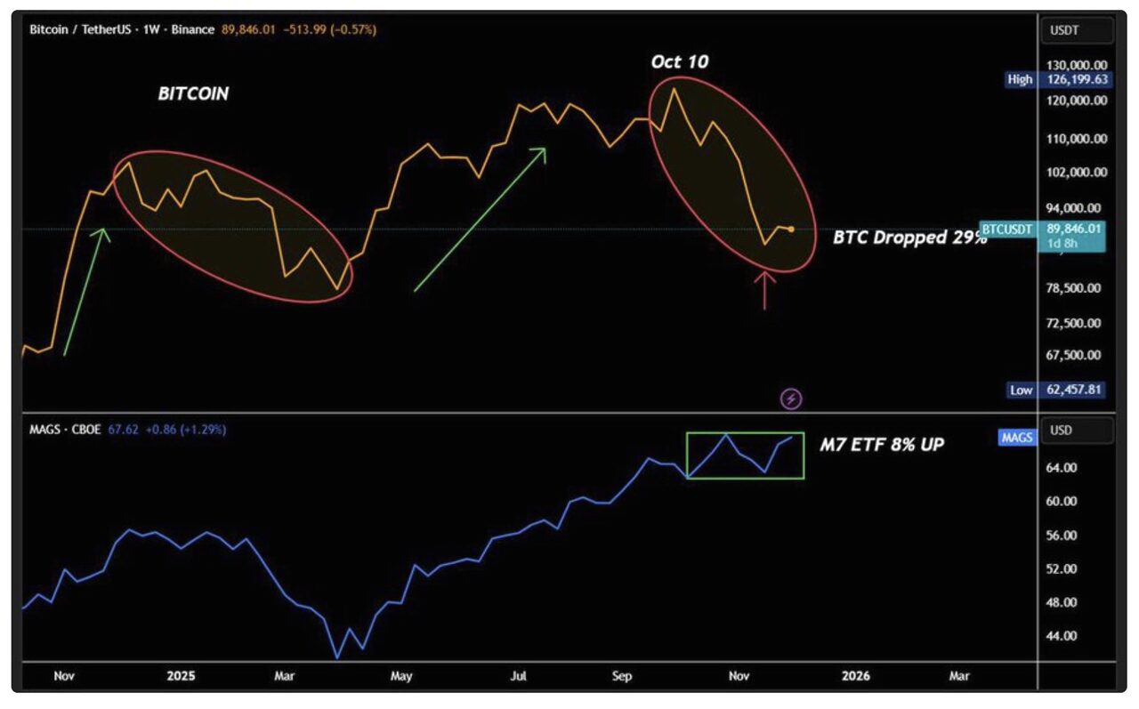 Theo quan điểm của ông, cổ phiếu Mỹ đã tăng khoảng 8% kể từ ngày đó và nhiều cổ phiếu đã đạt mức cao kỷ lục mới, trong khi Bitcoin vẫn giảm khoảng 29%. Ông cho biết mỗi đợt tăng giá ngắn hạn đều vấp phải làn sóng bán tháo mạnh, và gần 500 triệu đô la tiền thanh lý xuất hiện trên thị trường trong nhiều ngày.