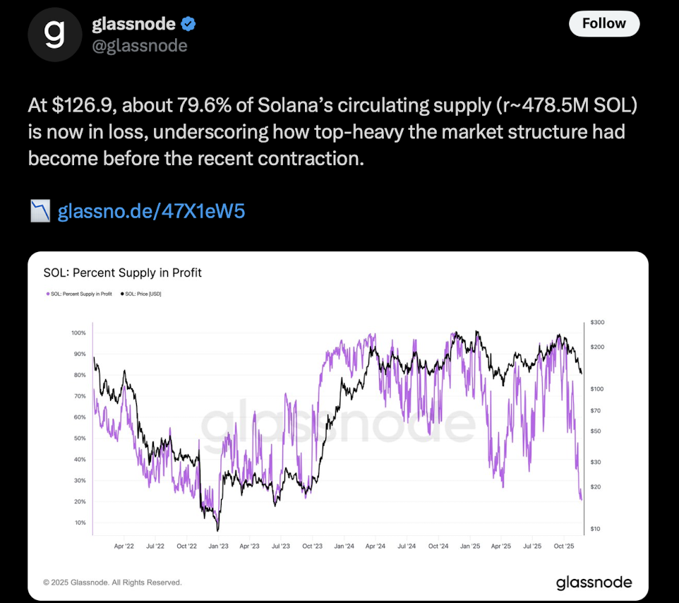79,6% nguồn cung SOL đang bị lỗ — thị trường chảy máu toàn diện