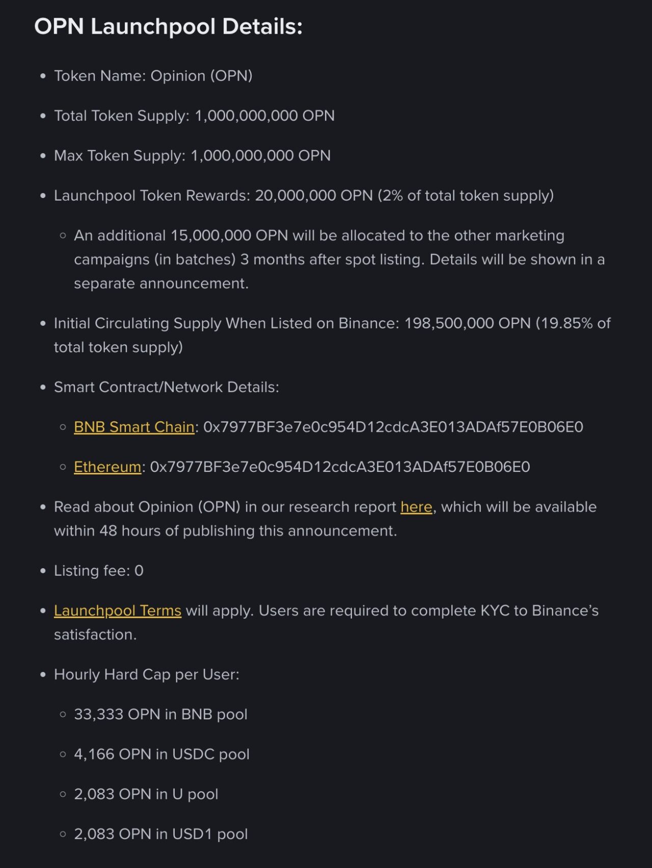 Binance thông báo dự án thứ 72 trên Binance Launchpool – Opinion (OPN), dự án xây dựng cơ sở hạ tầng hiệu năng cao thế hệ mới cho giao dịch toàn cầu các tín hiệu, ý kiến và dự đoán.