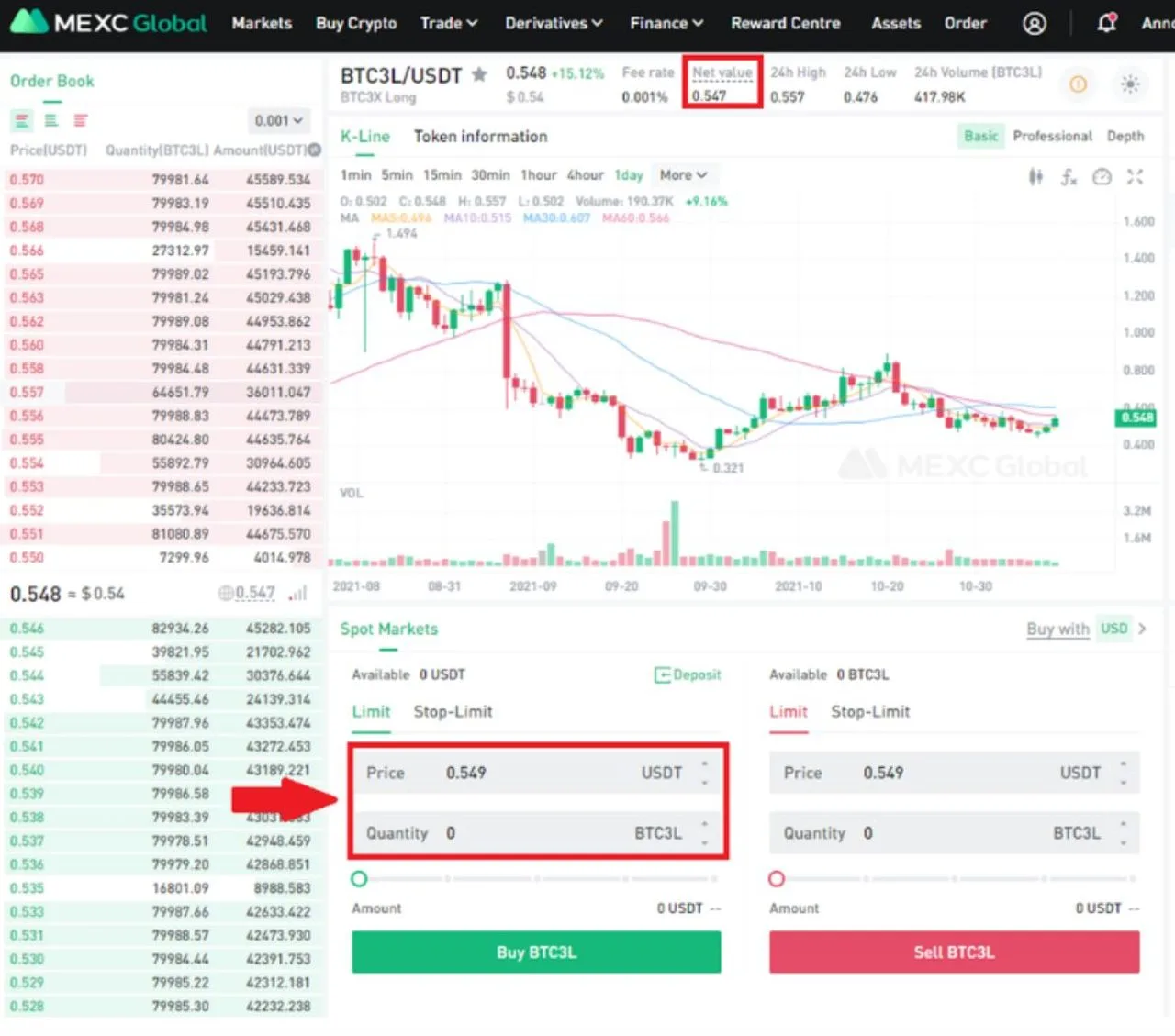 Ngọc Mei: Ưu điểm của tiền điện tử ETF có đòn bẩy là: Các trader có thể giao dịch giao ngay tiền điện tử ETF tiền điện tử có đòn bẩy trên MEXC. Bởi vì không yêu cầu ký quỹ, các vị trí sẽ không bị thanh lý khi giá của tiền điện tử cơ sở giảm xuống. Ví dụ: Nếu bạn muốn mua BTC3L (Long gấp 3 lần BTC), bạn chỉ cần kiểm tra giá trị ròng, chọn giá thích hợp và nhập số lượng mua của bạn.