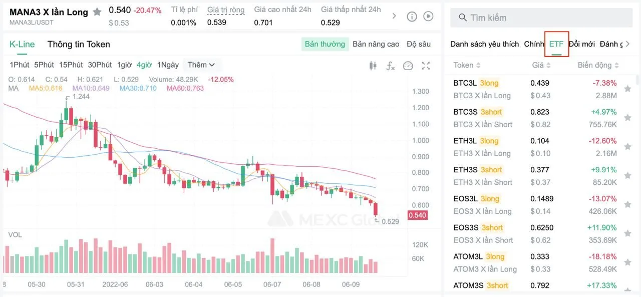 Cuối cùng, MEXC có nhiều sản phẩm ETF hơn so với các sàn giao dịch tiền điện tử khác. Trong các sản phẩm ETF của chúng tôi, chúng tôi hỗ trợ 2x 3x 4x và 5x trong cả Long và Short. Nếu bạn muốn xem tất cả các sản phẩm ETF của chúng tôi, bạn có thể xem tại đây và chọn ETF.
