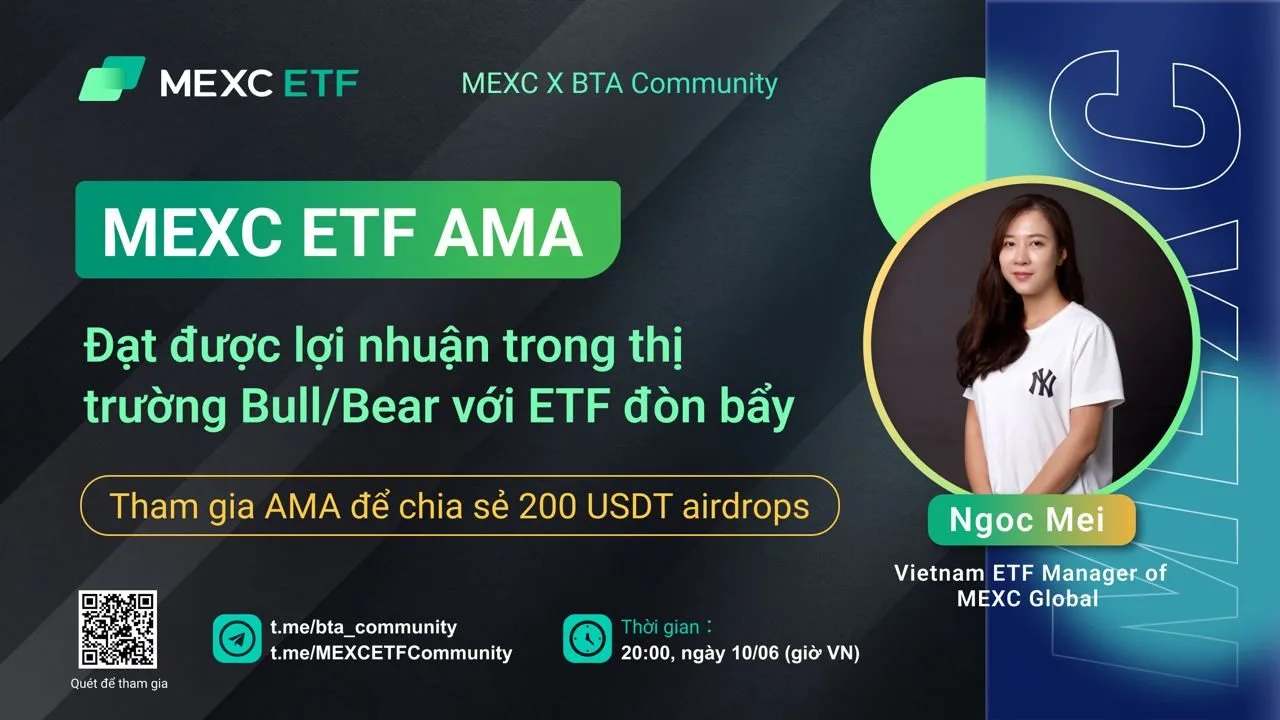 Các bạn có thể tham gia vào cộng đồng ETF của MEXC để cập nhật các sự kiện mới về ETF: https://t.me/MEXCETFCommunity và kênh thông báo tiếng Việt: https://t.me/MEXC_Vietnam