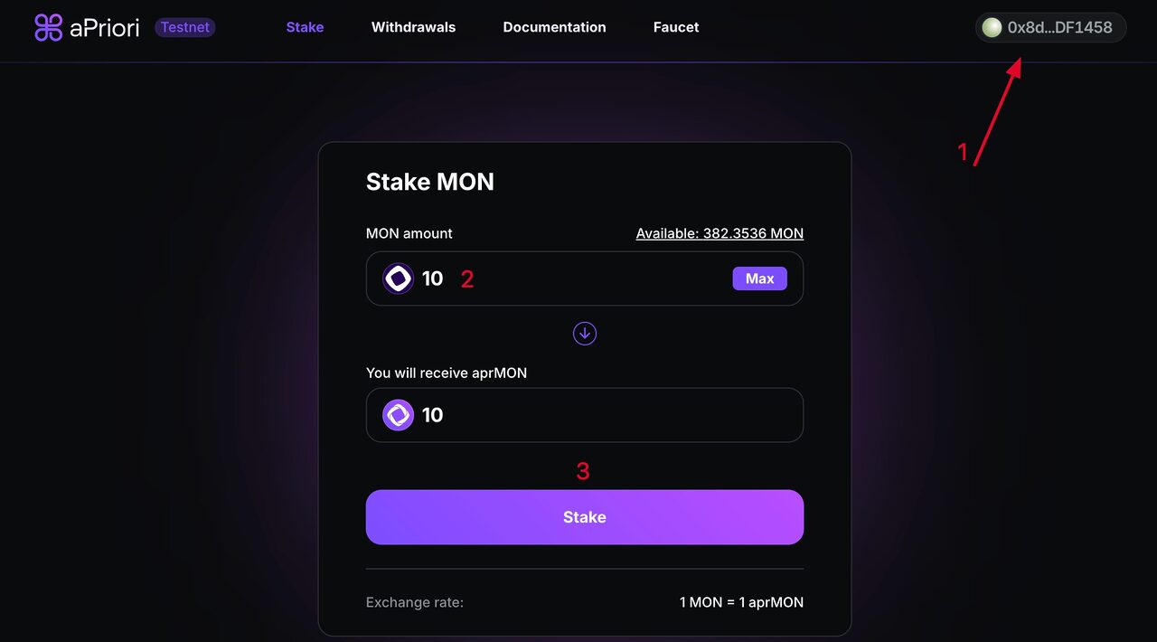 Stake bất kỳ lượng $MON nào và nhận $aprMON, có thể sử dụng ngay trong các ứng dụng DeFi.