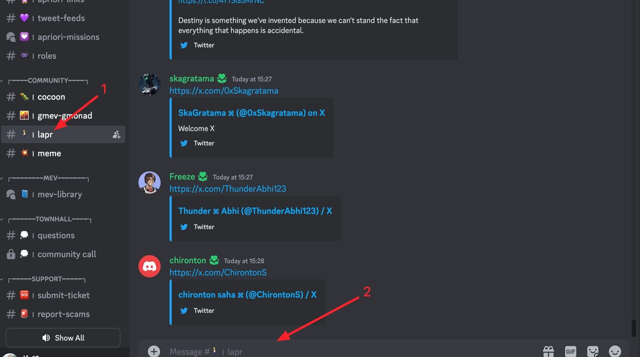 Gửi link tài khoản X vào kênh lapr.