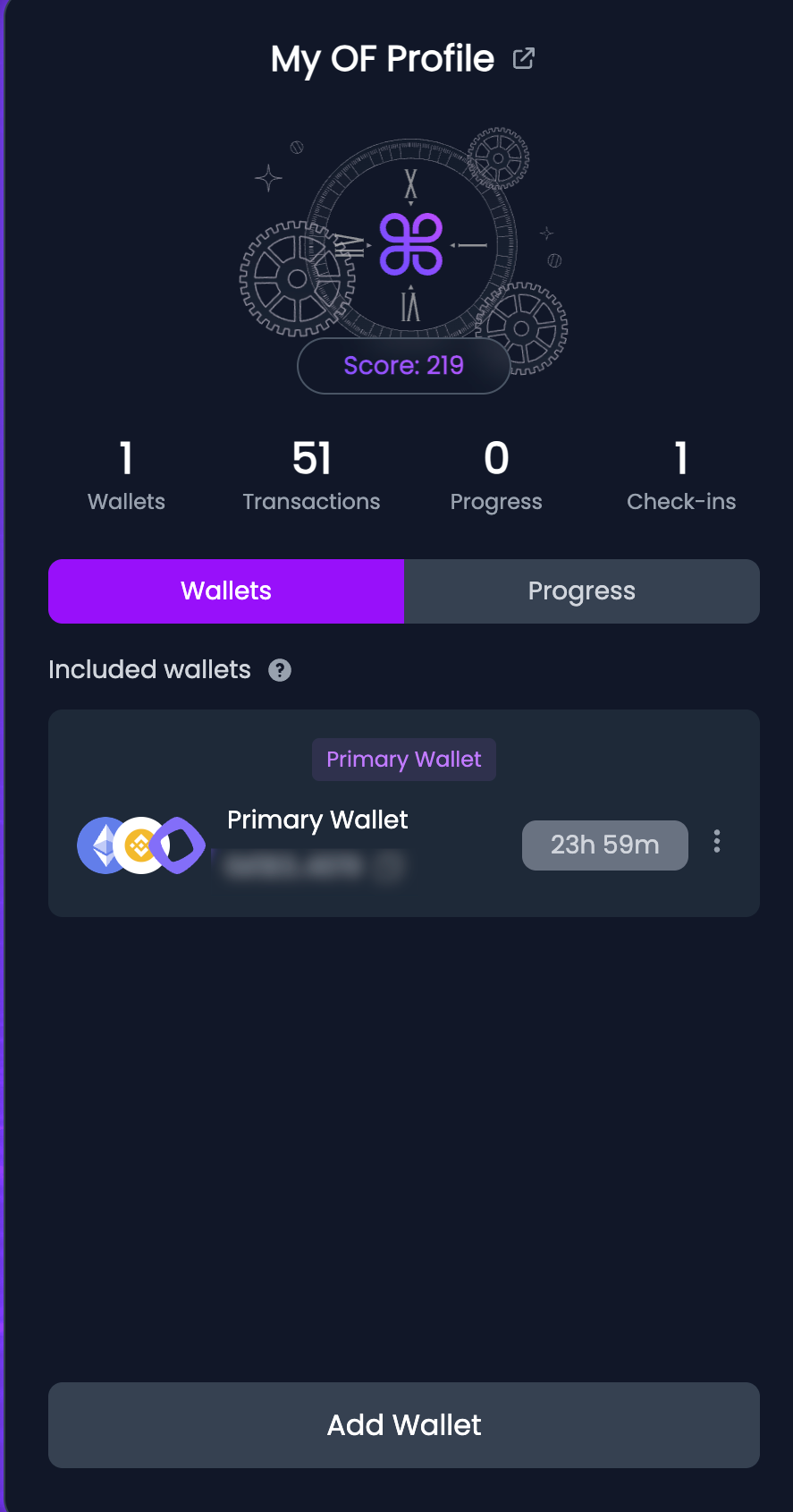 Bước 2: Kiểm tra điểm của ví và có thể kết nối các ví khác để kiểm tra hàng ngày