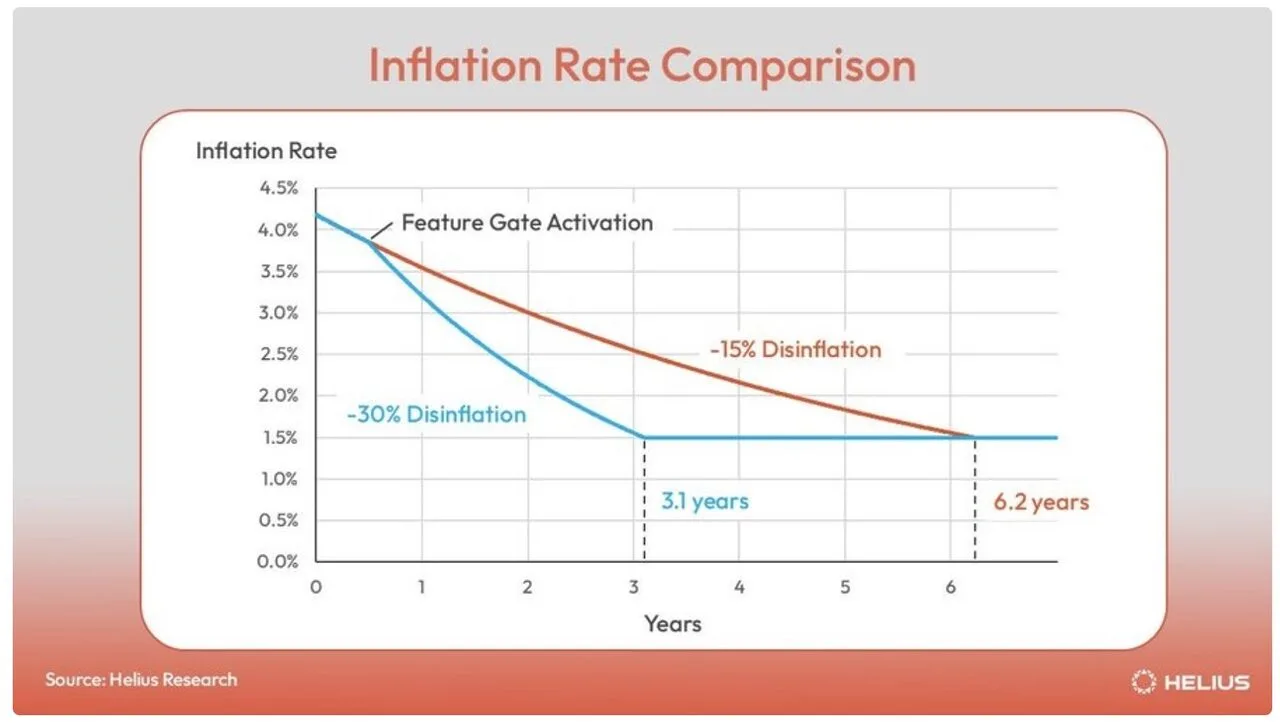 Theo lịch trình hiện tại, Solana sẽ mất khoảng 6,2 năm để đạt mức lạm phát thấp cuối cùng là 1,5%. Nhưng với thay đổi được đề xuất, hành trình đó sẽ được rút ngắn chỉ còn 3,1 năm.