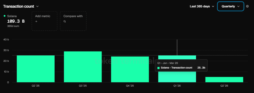 Tuy nhiên, Solana lại vượt xa với 25,3 tỷ giao dịch, tức gấp hơn 125 lần Ethereum trong cùng kỳ.