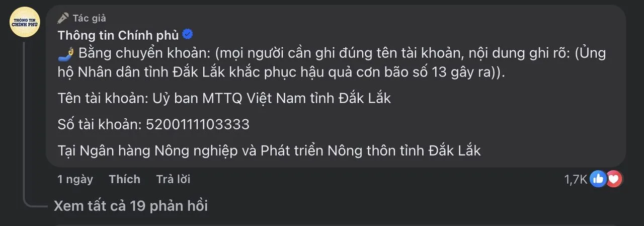 Mọi khoản quyên góp ủng hộ người dân miền Trung, xin chuyển về UBMTTQ Việt Nam: